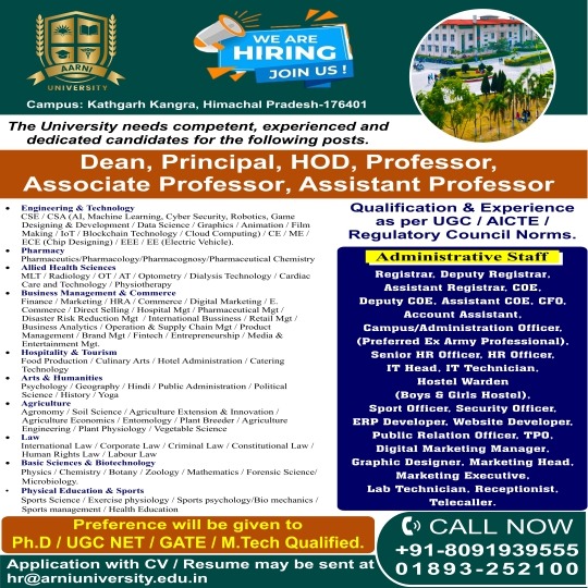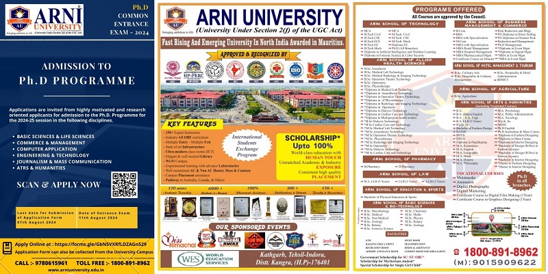 Arni University (AU) is a leading Indian institution of higher education, providing a rare combination of technical and academic excellence to its students. Since 2009, the university has been accredited by UGC, India. Our students are emancipated by a wide range of programs combined with versatility, experiential learning and interdisciplinary orientation to develop their passions and seek dream careers. At Arni University we are grooming students to be socially sensitive through intellectually challenging and contemporary diverse culture. ‘Skill Comprehensive Higher Education' is appropriately remembered by Arni University as a visionary. Its specific paradigm places special focus on building sustainable livelihoods in difficult geographies on a national scale through higher education that contributes to employability and sparks entrepreneurship.